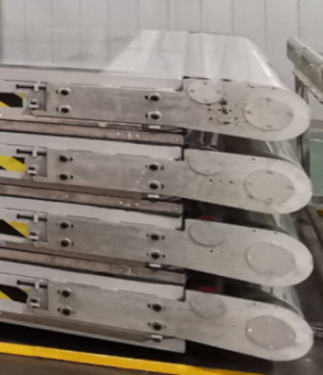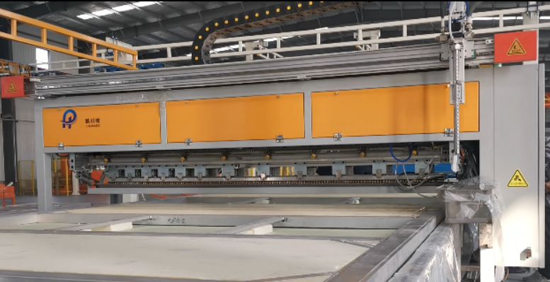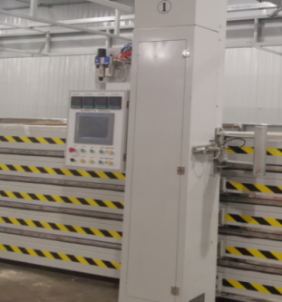 四层负压机的主体钢结构采用Q345B材料焊接。平台外形寸为10290*3240,平台上安装10050*3000*30玻璃钢复合带气浮孔台面,顶层采用定制C型材。可实现最大10000*3000*150的板件生产。